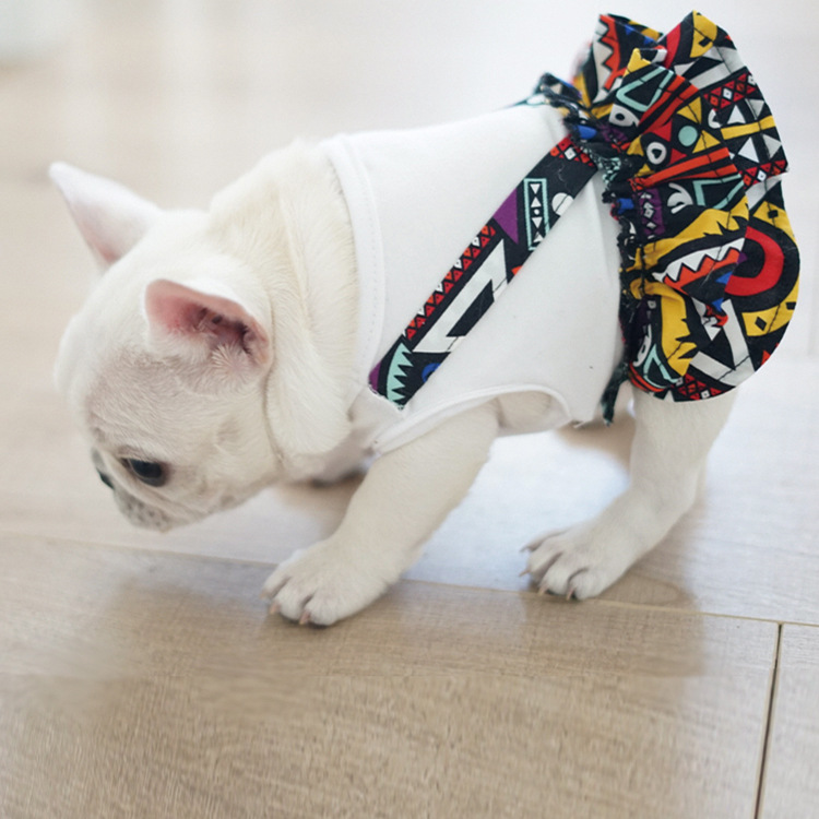 Rok bunga hewan peliharaan Musim Semi dan musim panas gaya etnik lucu ember Prancis tipis Teddy Corgi pakaian rok suspender aksesori pakaian kucing dan anjing