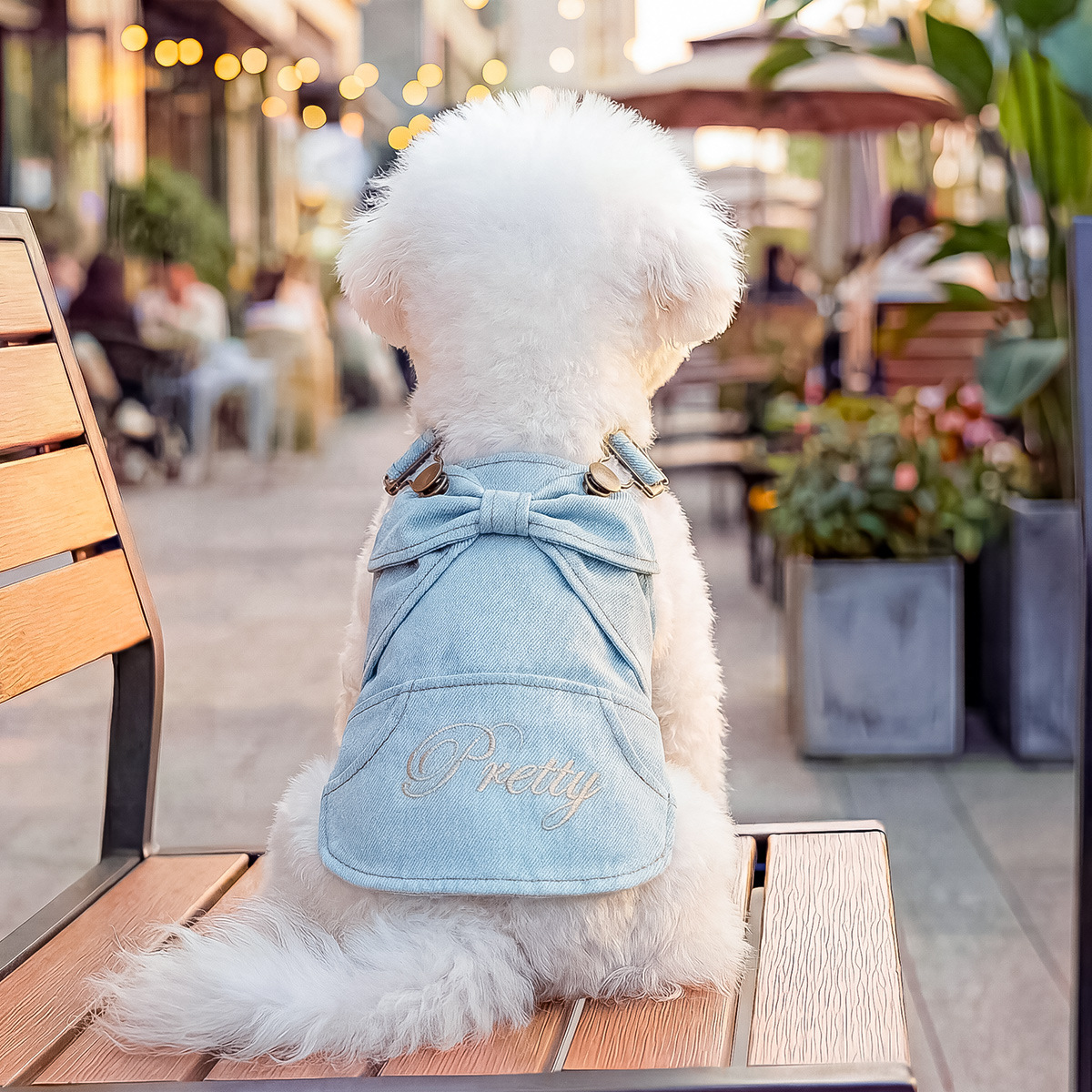 Tersedia pakaian anjing peliharaan populer lintas batas pabrik sumber rok denim pita musim semi dan musim panas pengiriman satu bagian