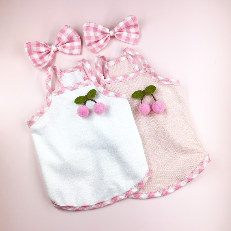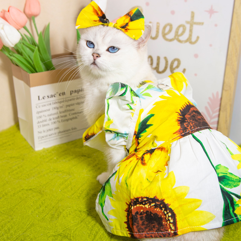 Pakaian hewan peliharaan musim panas baru 2024 setelan baju ember kucing selempang ceri Teddy baju hewan peliharaan batch bunga hiasan kepala Gratis