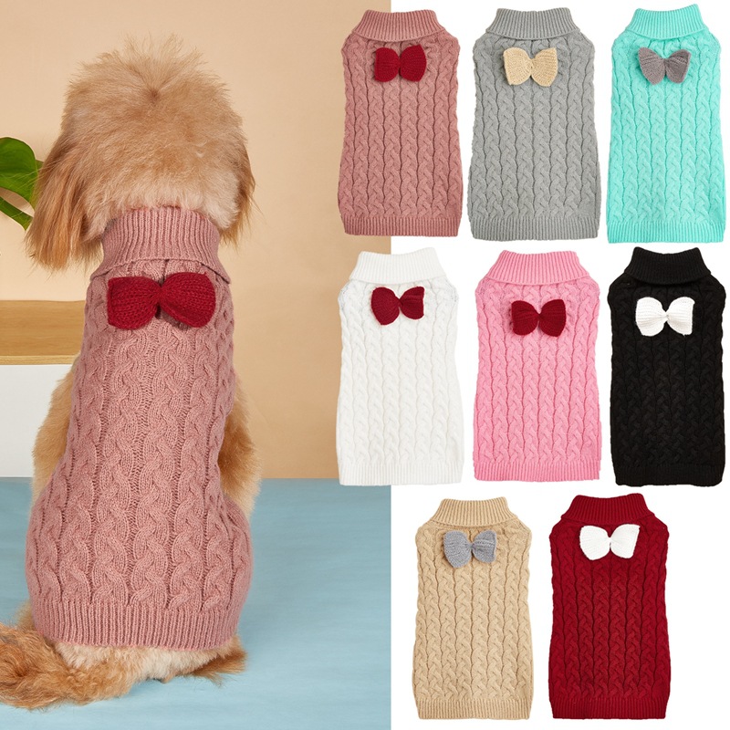 Sweater anjing musim gugur dan musim dingin, sweater anyaman tiga dimensi warna solid, putaran penuh dengan pita