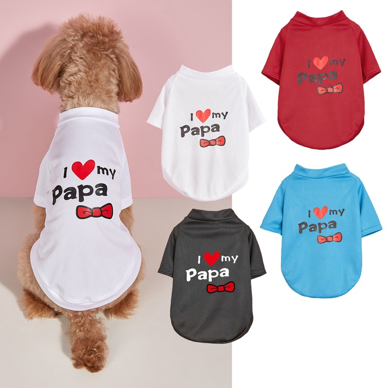 Pakaian hewan peliharaan kaus jaring bersirkulasi bercetak pita Cinta aku cinta Aku Cinta papa baju hewan peliharaan warna polos dengan kaki dua