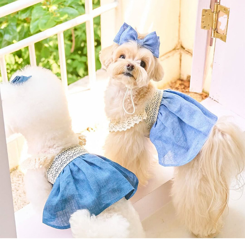 Perlengkapan Rok Denim Hewan Peliharaan Anjing Kecil dan Menengah