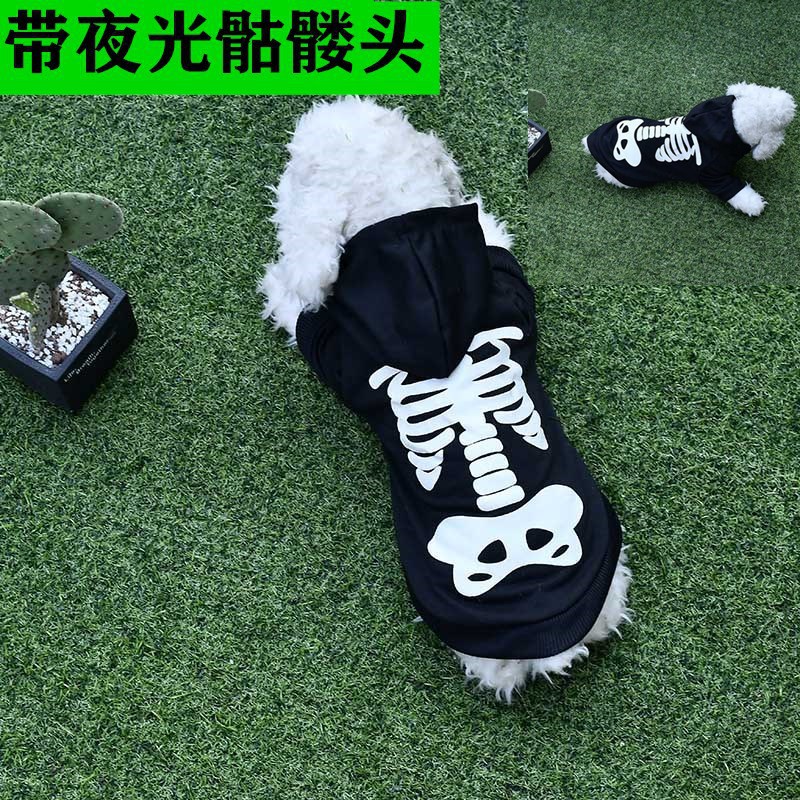Pakaian anjing Halloween warna polos, pakaian anjing Halloween, pakaian liburan, karnaval, pakaian kucing Teddy, pakaian anjing kecil, tengkorak bercahaya, warna polos, baru