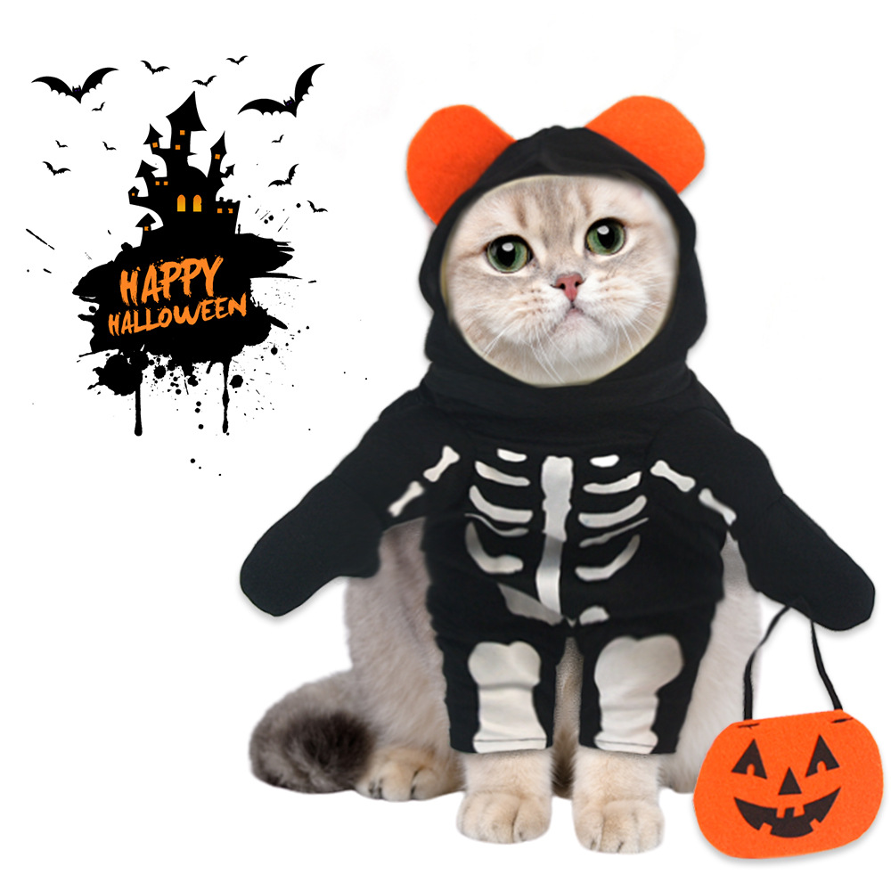 Produsen lintas batas pakaian hewan peliharaan tengkorak Halloween labu anjing kecil dan sedang pakaian transformasi lucu pakaian berdiri kucing