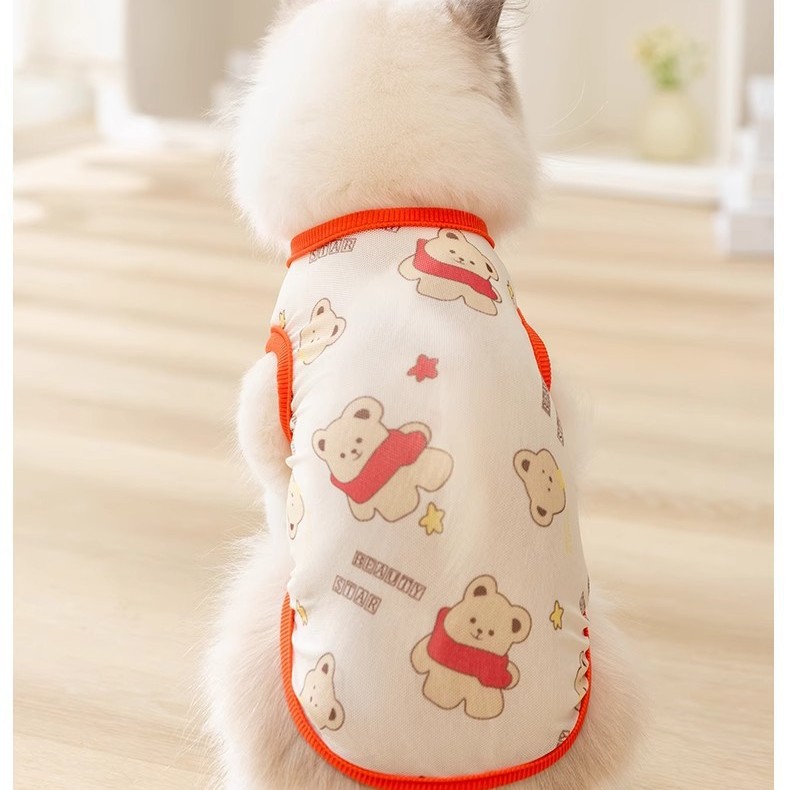 Pakaian Kucing Bulu Anti Jatuh Musim Panas Model Tipis Jaring Bernapas Tank-top Kecil Boneka Kain Hewan Peliharaan Lapisan Perak Pakaian Dua Kaki Kucing Muda