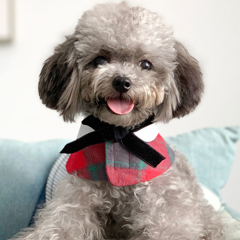 Aksesori pakaian hewan peliharaan selendang pita beludru kotak-kotak lucu syal anjing teddy selendang anjing kecil
