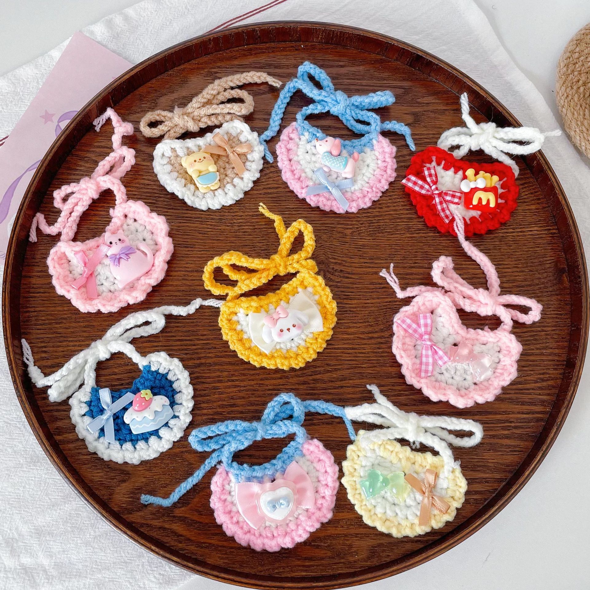Kerah Rajut Wol Hewan Peliharaan Topi Anjing Kucing Topi Celemek Boneka Topi Celemek Hiasan Kepala Boneka Syal