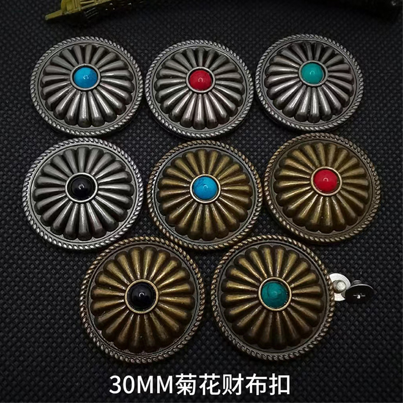 Pabrik grosir kulit aksesoris dompet vintage buatan tangan diy30MM bertatahkan pirus krisan sekrup kain gesper