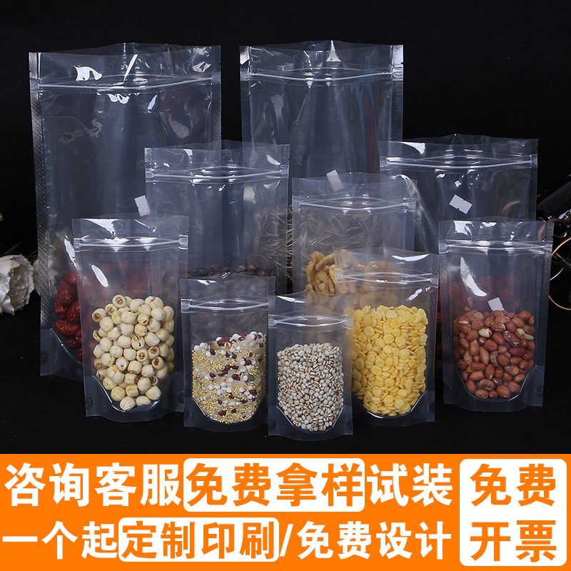 Stok tersedia grosir transparan self-support swa-sealing bag makanan ringan barang kering biji melon merah tanggal medlar kemasan kacang tas