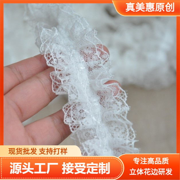 4CM Lebar Hitam Putih Lapisan Ganda Renda Lipit Pakaian Renda Kerah Renda Pakaian Hewan Peliharaan Renda Bahan Tambahan Renda