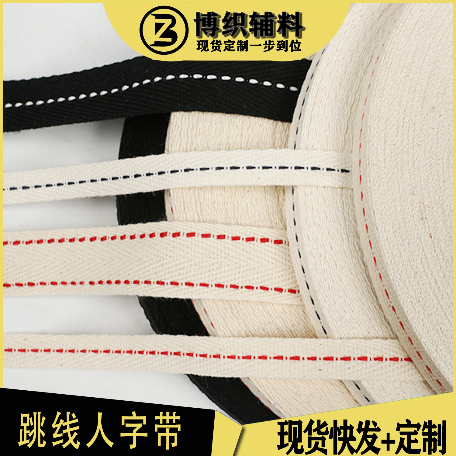 Tersedia merah dan hitam titik lompatan pita herringbone 1cm jumper tunggal dan ganda pita kepar campuran katun lompat pita kustomisasi tulang herringbone