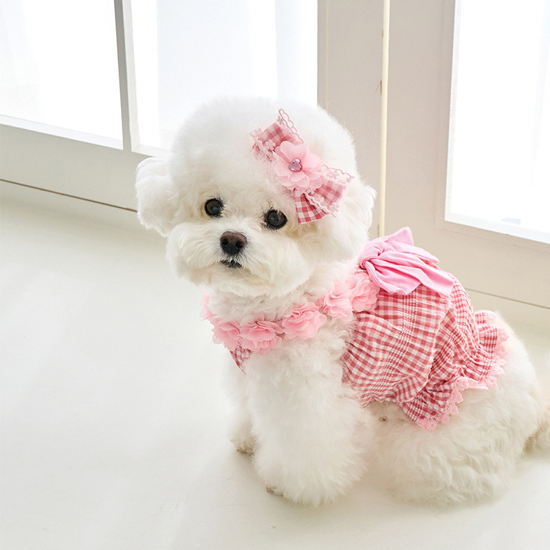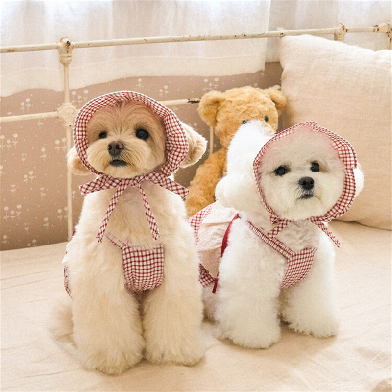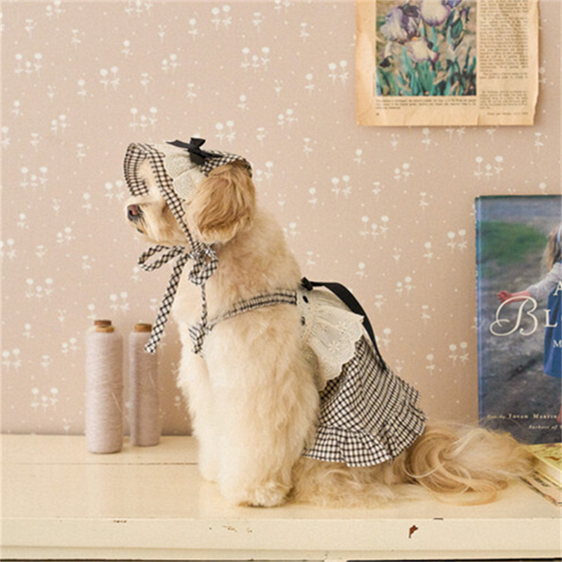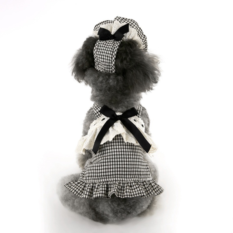 Pakaian Anjing Produk Baru Rok Suspender Kotak-Kotak Kecil Hewan Peliharaan Pakaian Lucu Sederhana Pakaian Anjing Bo Mei Hiasan Kepala