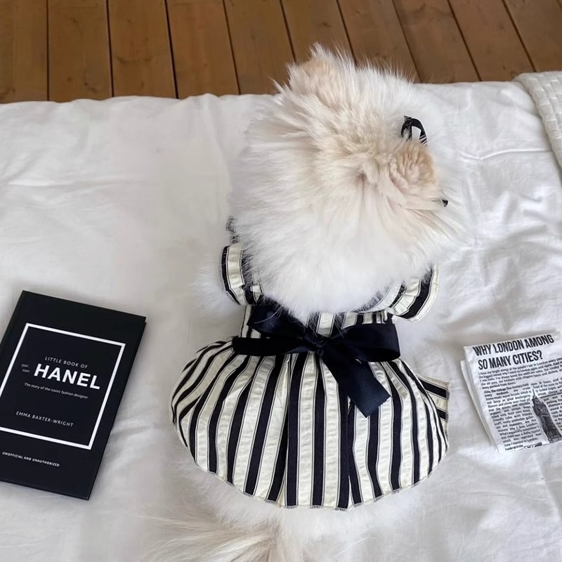 Gaun Anjing Kecil Gaya Putri Musim Semi dan Musim Panas Rok Pita Kupu-Kupu Kucing Bergaris Lengan Terbang Kecil Lucu Pakaian Hewan Peliharaan