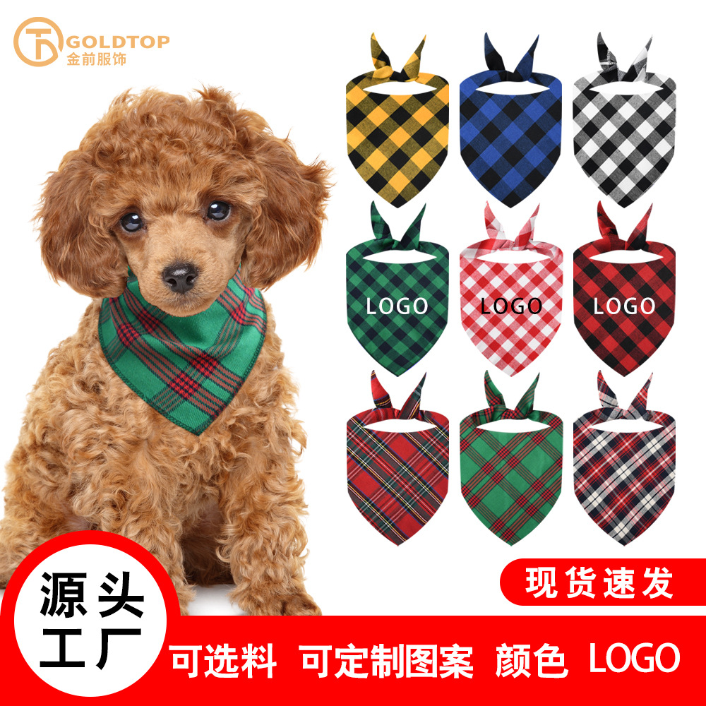 Handuk air liur hewan peliharaan diy pesta ulang tahun Natal Amazon lintas batas grosir handuk segitiga kotak-kotak katun kucing dan anjing