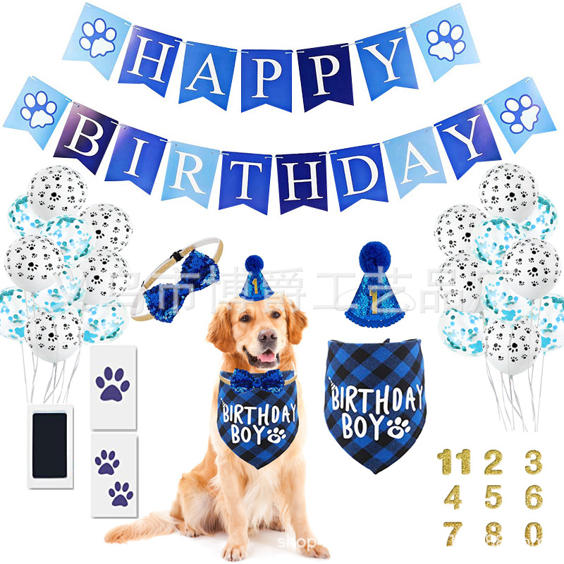 Perlengkapan dekorasi pesta ulang tahun hewan peliharaan handuk air liur gaun pita dekorasi spanduk Balon segel kaki anjing