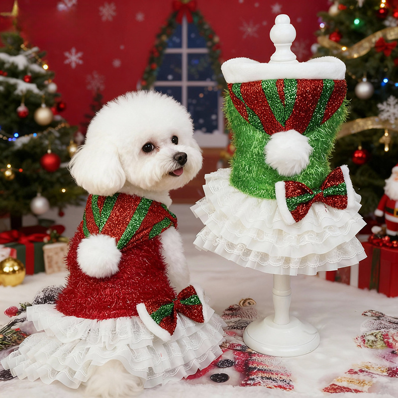 Pakaian anjing mewah berkilau Natal hewan peliharaan Dekorasi liburan jumpsuit klasik lintas batas Elf baru