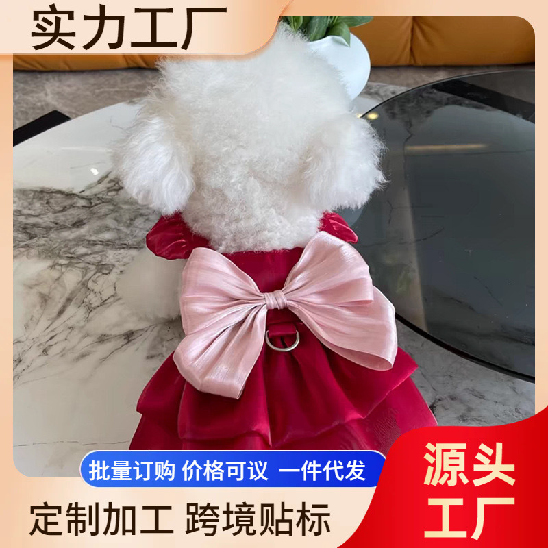 Tali Penarik Pakaian Anjing Keluar Rok Pakaian Hewan Peliharaan Teddy Bixiong Bomei VIP 25 Rok Penarik Bunga Boneka Kain