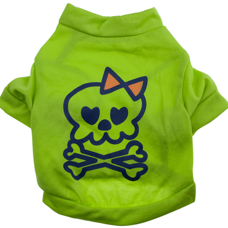 Persediaan hewan peliharaan pakaian anjing poliester busur tengkorak T-shirt buah hijau grosir musim semi dan musim panas baru