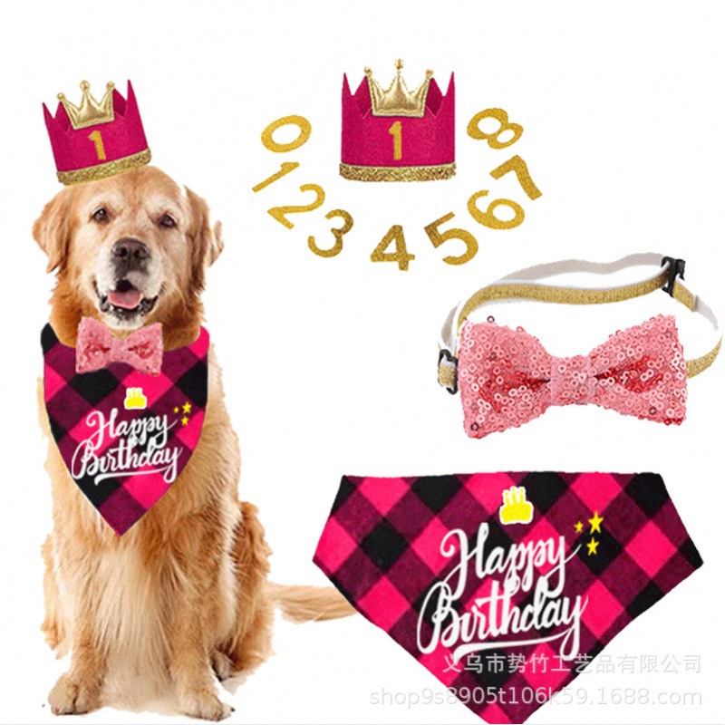 Gaun pesta ulang tahun hewan peliharaan Amazon dengan handuk air liur topi mahkota ulang tahun setelan ulang tahun anjing grosir