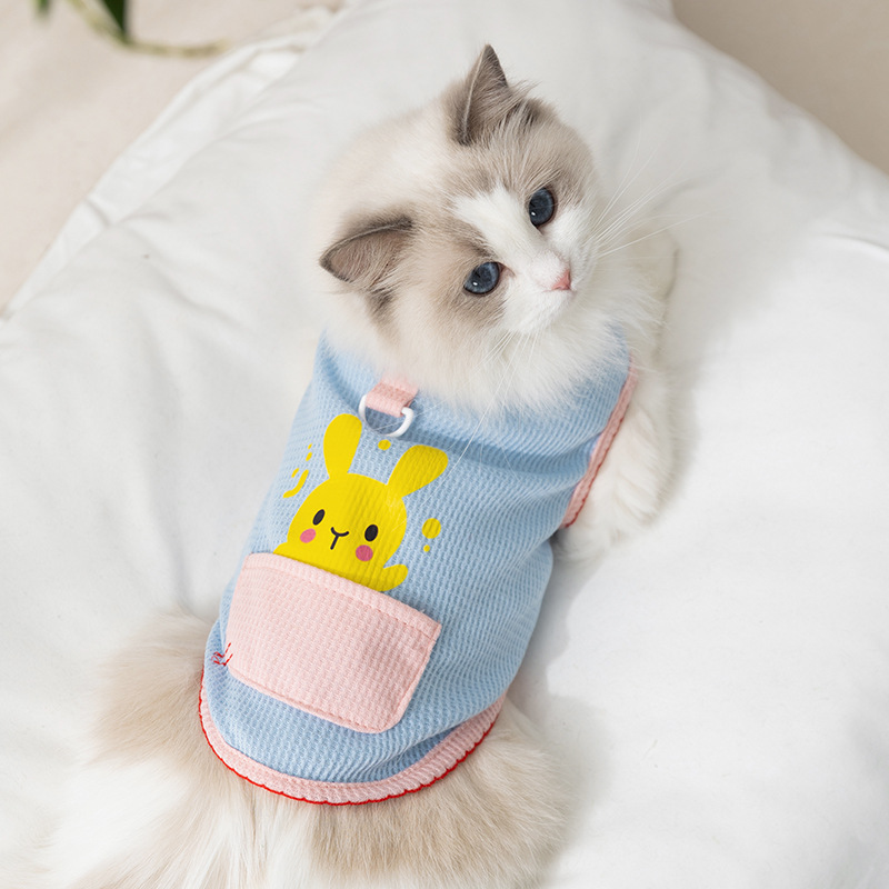 Pakaian Kucing Model Musim Semi dan Musim Panas Tank Top Traksi Kantong Kartun Pakaian Hewan Peliharaan Boneka Anjing Kecil dan Menengah Nyaman Bernapas