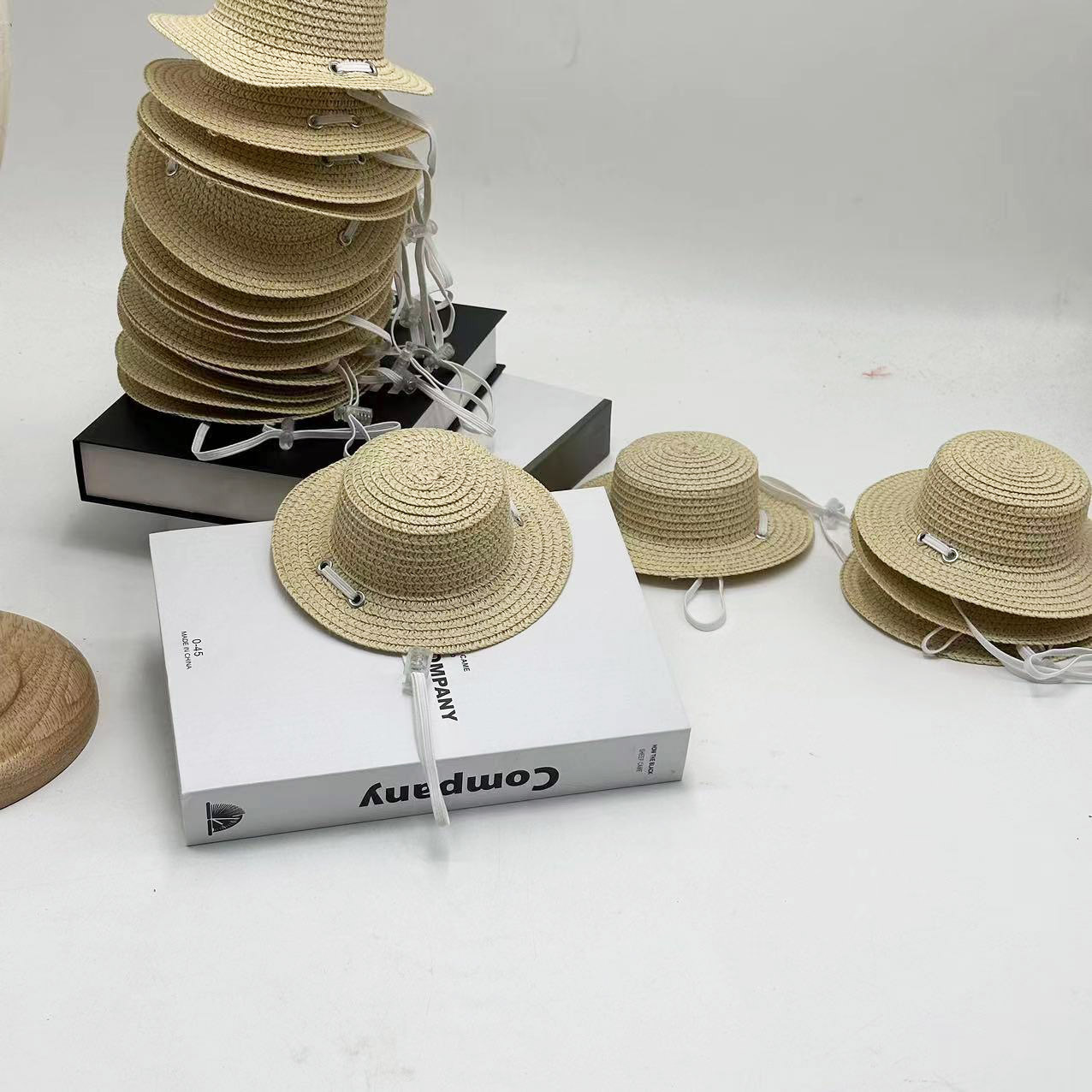Topi jerami hewan peliharaan 14CM, topi jerami mini kucing anjing Musim Semi dan musim panas