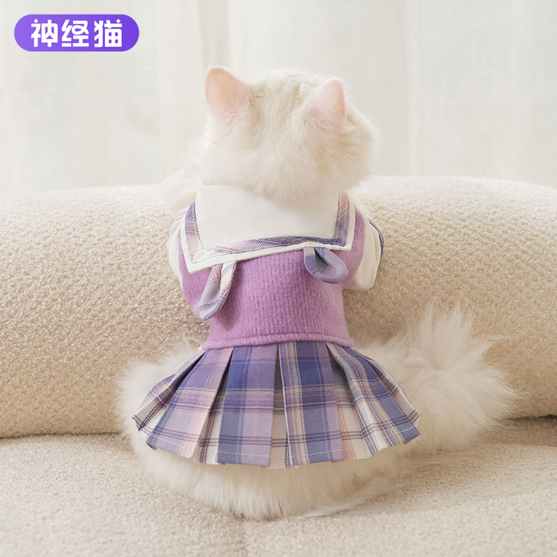 Pakaian Kucing Musim Gugur Rok Kota-Kerah Kelinci Gaya JK Rok Kucing Anti Jatuh Kucing Boneka Kain Pakaian Hewan Peliharaan Grosir