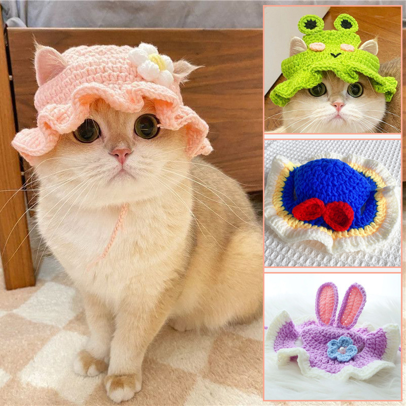 Penutup Kepala Hewan Peliharaan Lintas Batas Topi Rajutan Anjing Kucing Kecil Topi Hewan Peliharaan Hiasan Kepala Kucing lucu Alat Peraga