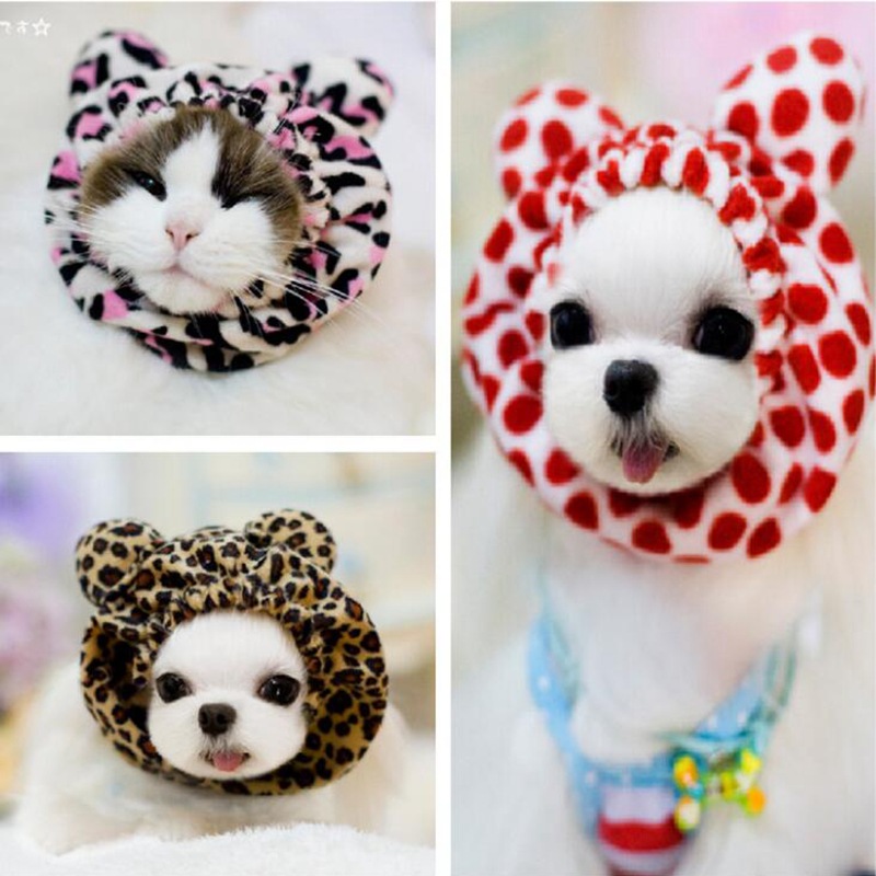 Topi telinga kucing anjing peliharaan, tutup kepala lembut cetakan macan tutul lucu, hangat musim gugur dan musim dingin