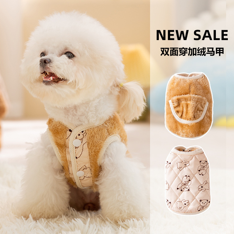 狗狗衣服秋冬可爱小熊双面穿加绒马甲可牵引两脚泰迪比熊宠物衣服