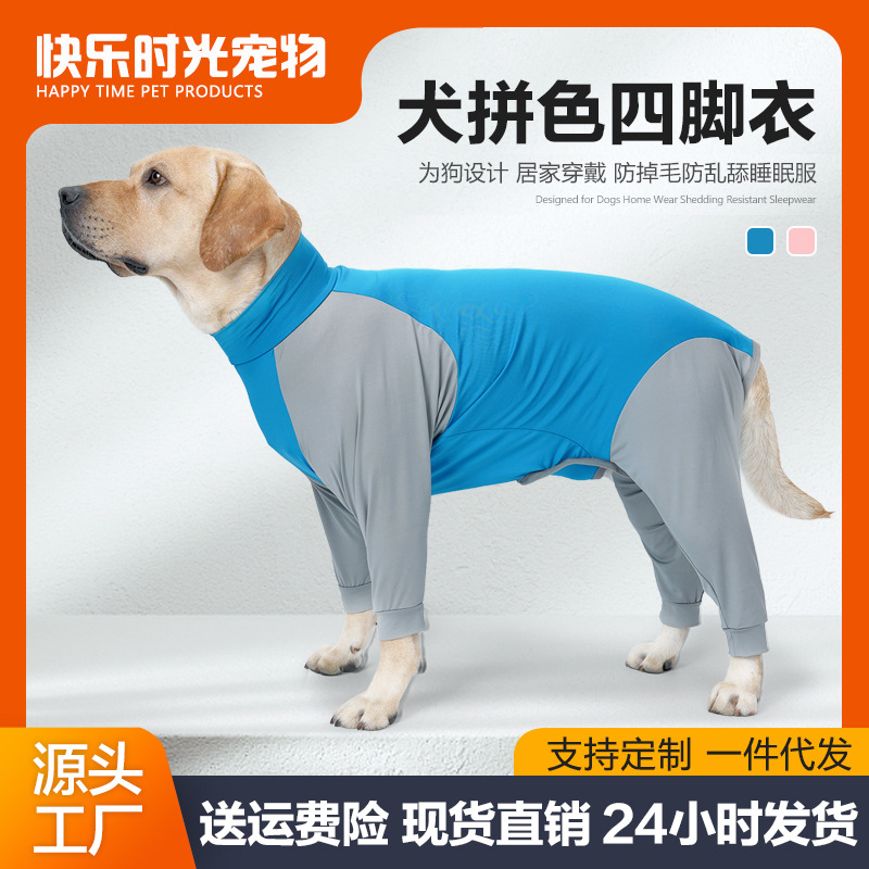 Pakaian anjing blok warna bernapas musim panas, pakaian rumah anjing anti-penumpahan berkaki empat yang dikelilingi sepenuhnya, pakaian sterilisasi pasca operasi yang dapat bernapas
