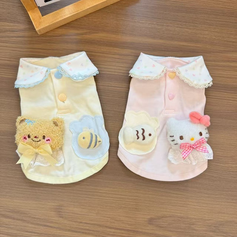 Pakaian Anjing Kucing Hewan Peliharaan Model Tipis Musim Panas Teddy Bichon Kucing Anjing Kecil Pakaian Musim Semi Musim Panas Tali Gantung Lucu Rambut Pengganti