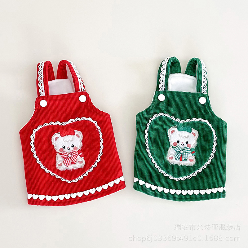 Mifaya pabrik pakaian kucing dan anjing peliharaan Natal Tahun Baru musim gugur dan musim dingin rok suspender beruang lucu bergaris bulu domba korduroi