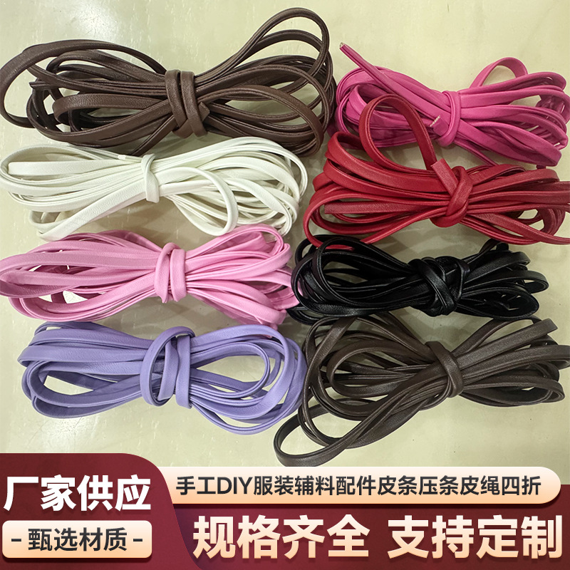 Aksesori pakaian pita PU pola kulit domba tas pembungkus tepi tali kulit strip berlapis tali kulit empat lipatan produsen lipat empat lapis