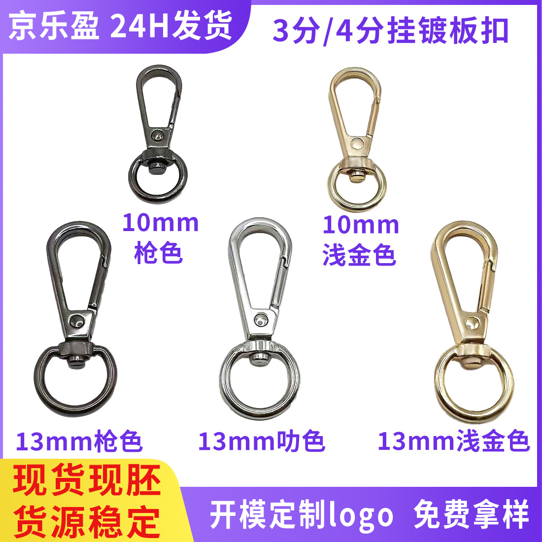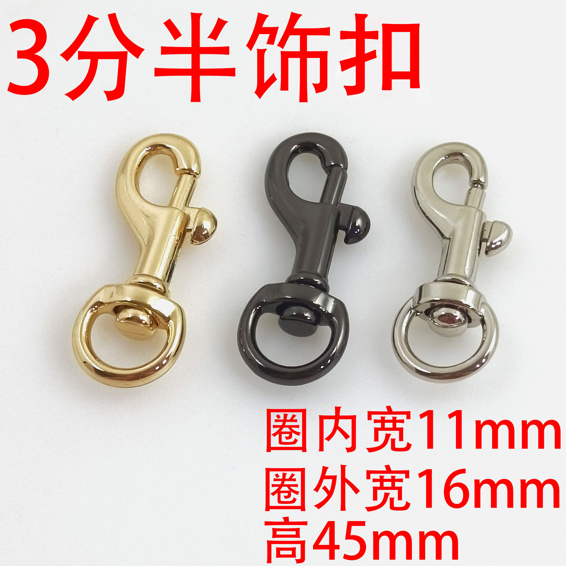Dalam stok gesper anjing lobster gesper gantungan kunci 3 poin logam bulat ekor gesper tas ponsel pita kait gesper Aksesori paduan