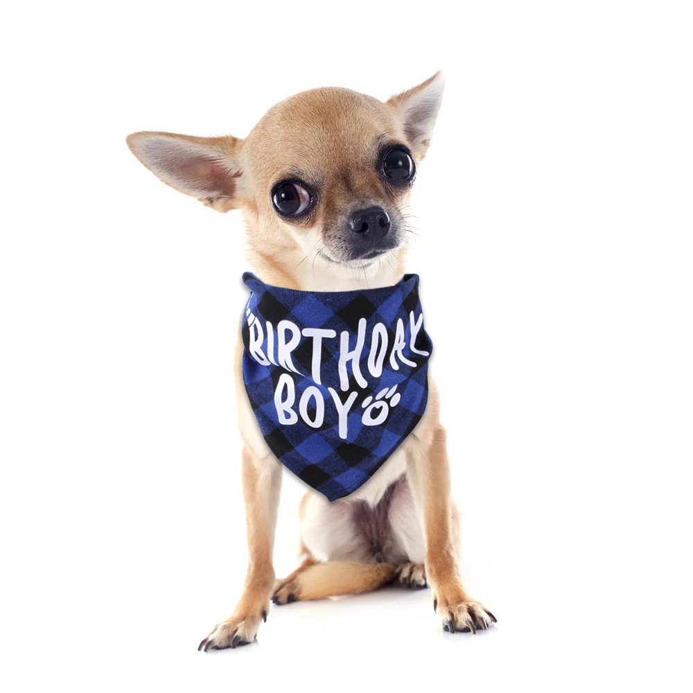 Cross-border segitiga ulang tahun hewan peliharaan baru kotak-kotak anjing Inggris handuk air liur perlengkapan kucing peliharaan grosir