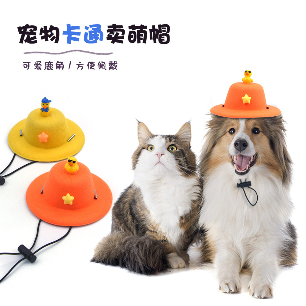 Topi kartun hewan peliharaan, aksesoris cosplay anjing kucing berdandan kacamata lucu topi hewan peliharaan bebek