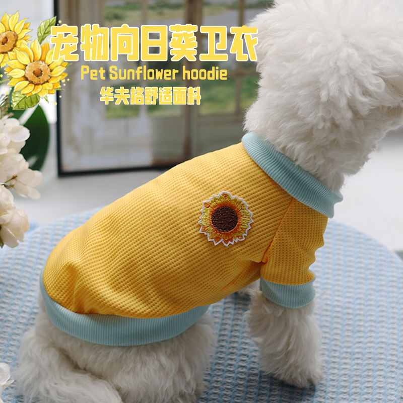 Waffle pullover bunga matahari lucu, pakaian putri hewan peliharaan Universal warna permen dan kucing