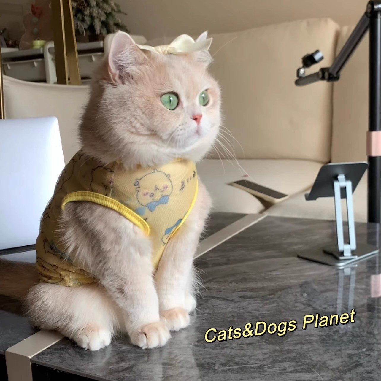 Pakaian Kucing Kucing Musim Panas Model Tipis Anti Jatuh Bulu Emas Boneka Kain Kucing Kecil Inggris Pendek Kucing Kecil Bernapas Hewan Peliharaan Bernapas