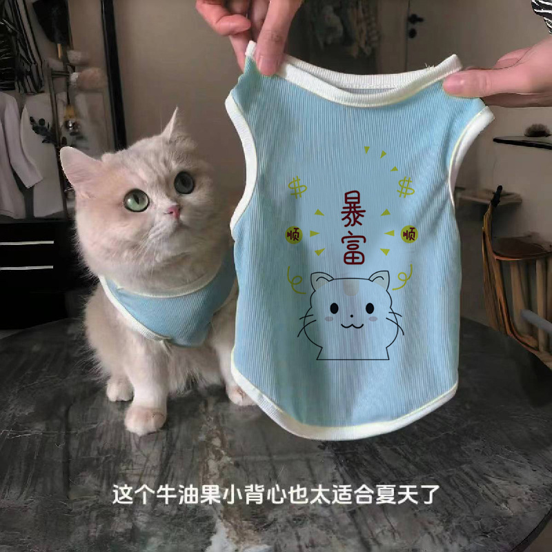 Pakaian Kucing Hewan Peliharaan Musim Panas Kucing Boneka Instagram Imut Imut Bulu Anti Jatuh Rompi Kucing Biru Pendek Musim Panas Kucing Muda Bernapas