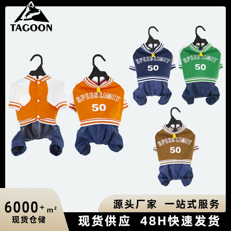 Pakaian hewan peliharaan baru musim semi dan musim panas pakaian berkaki empat mode traksi kucing kecil dan anjing sweter universal grosir