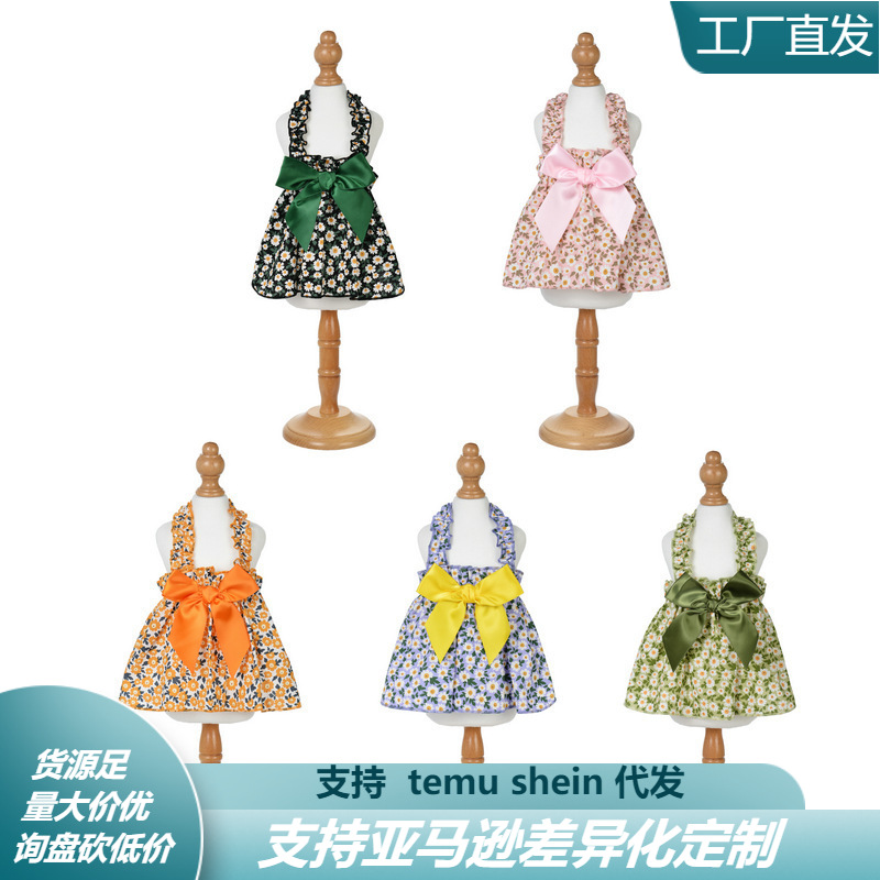 Gaun tali bahu berkerut motif bunga musim semi dan panas terlaris, gaun putri katun murni, pakaian hewan peliharaan, pakaian anjing elastis, gaun feminin.
