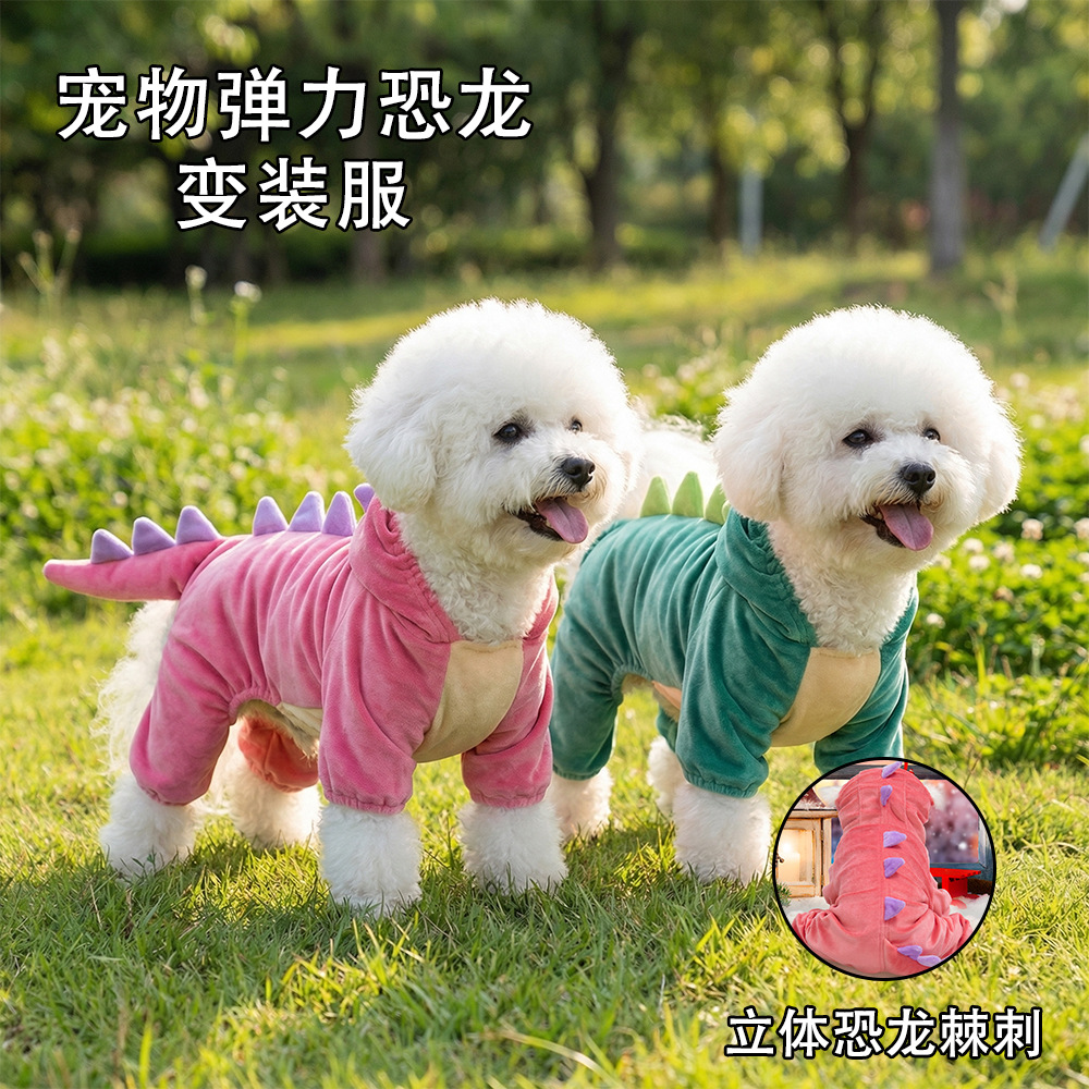 Pakaian anjing Halloween pakaian transformasi dinosaurus elastis beludru kristal kasual pakaian hewan peliharaan anjing kecil dan sedang kustomisasi