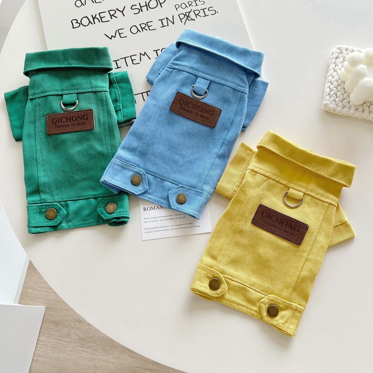 Traksi mantel Denim anjing Musim Semi dan musim gugur tipis hewan peliharaan anjing kecil Teddy chenari beruang Bomei pakaian kucing