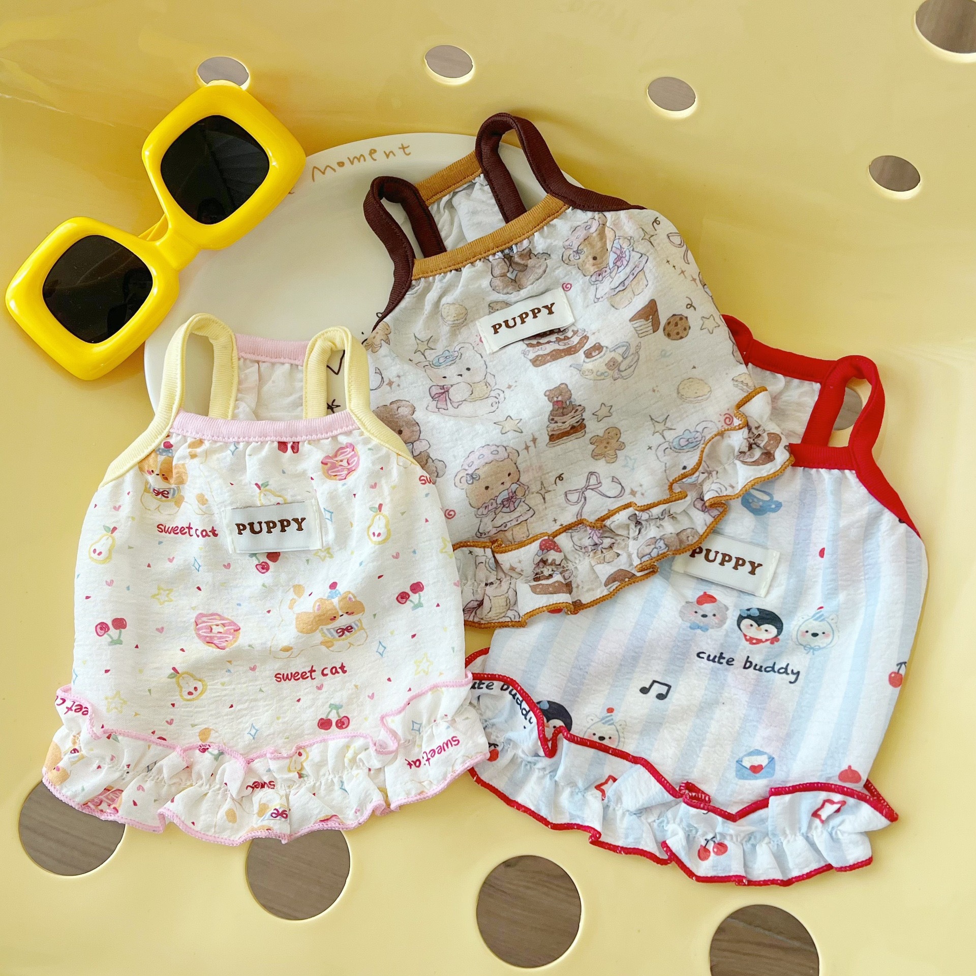 Pakaian Hewan Peliharaan Musim Panas Model Tipis Krim Bernapas Tank-Top Kartun Bertali Tank-Top Model Kecil Kucing Anjing Bicho Teddy