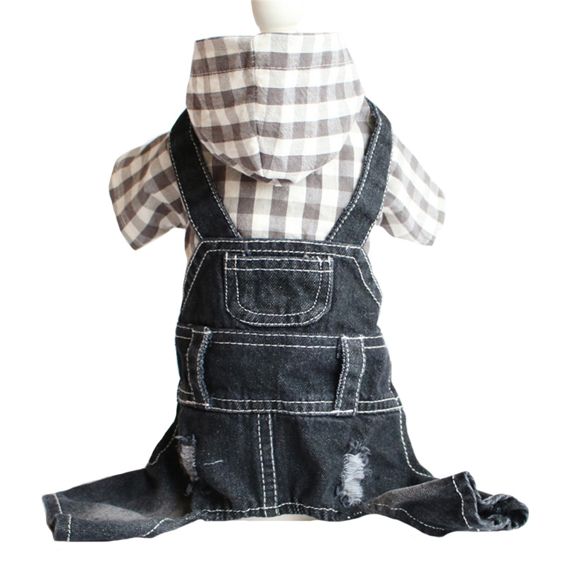Net merah klasik kotak-kotak Denim jumpsuit pakaian hewan peliharaan teddy musim semi musim panas pakaian anjing AC setelan tabir surya