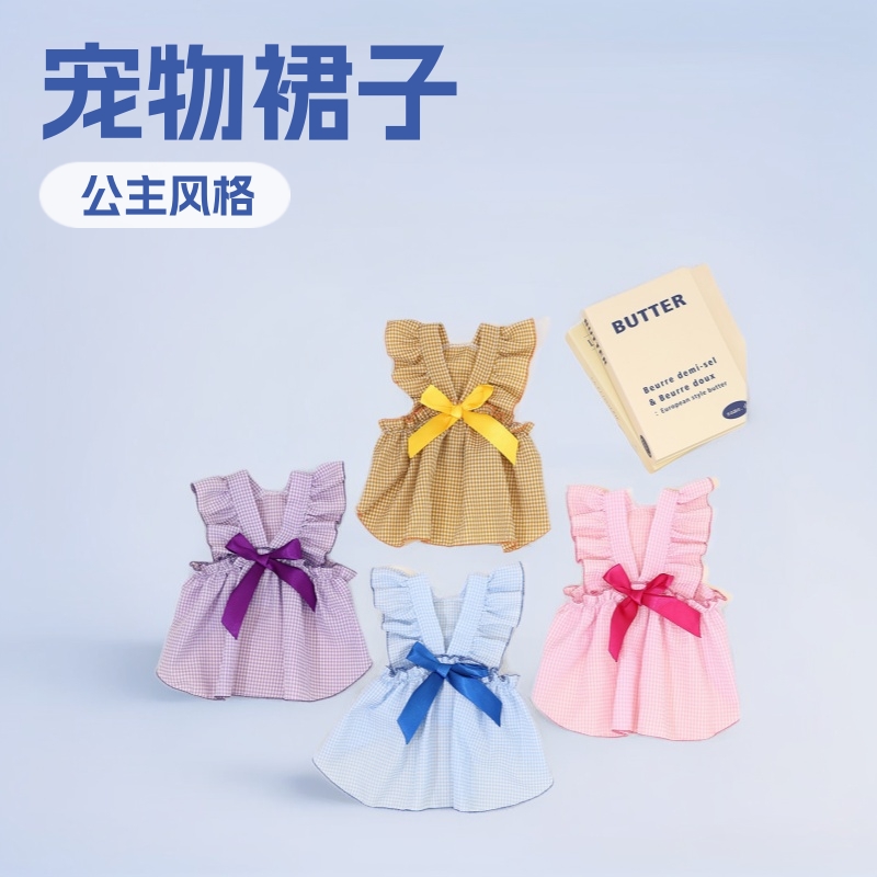 Rok Anjing Gaun Pita Kupu-Kupu Gaun Pernikahan Musim Panas Model Baru Kotak-kotak Pakaian Kucing Hewan Peliharaan Rok Hewan Peliharaan Lucu