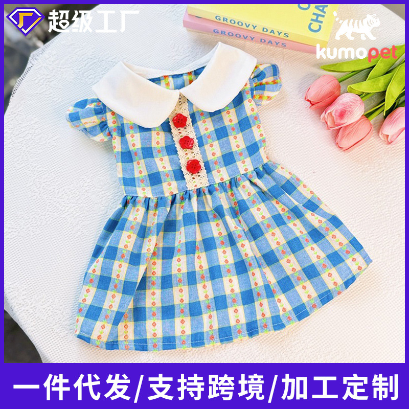 Baju hewan peliharaan Teddy, baju anjing musim panas, setengah panjang, renda kotak-kotak lucu