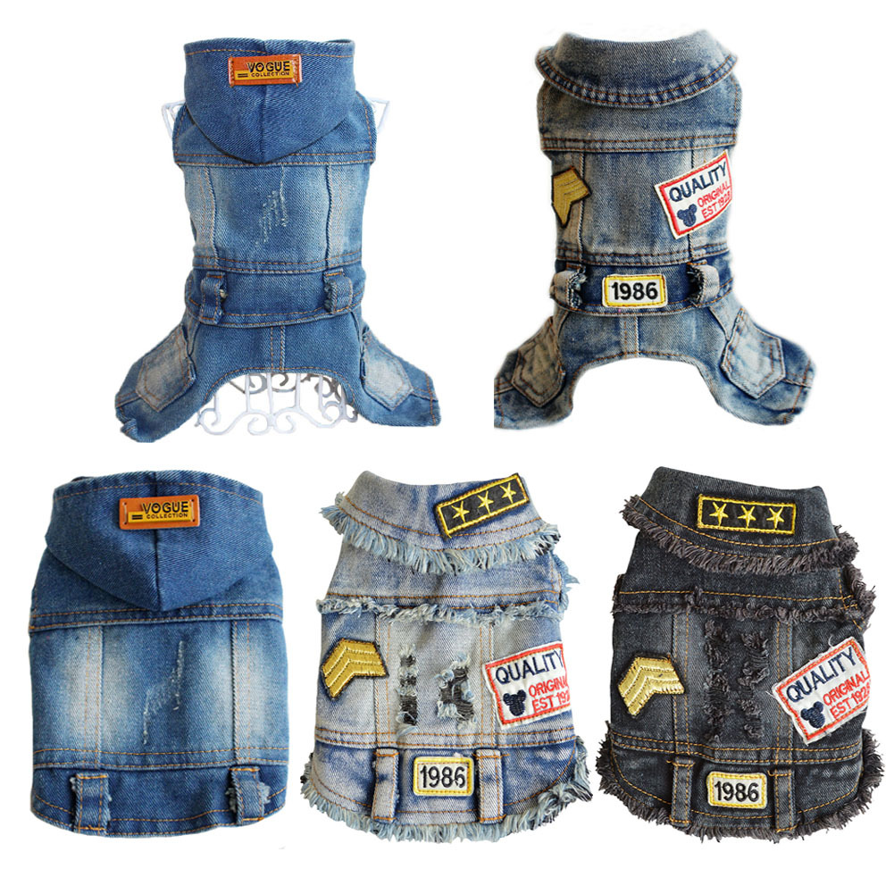 Pakaian denim hewan peliharaan, rompi kepribadian pola gores, rompi Denim robek, tambalan super keren, pakaian Teddy empat kaki