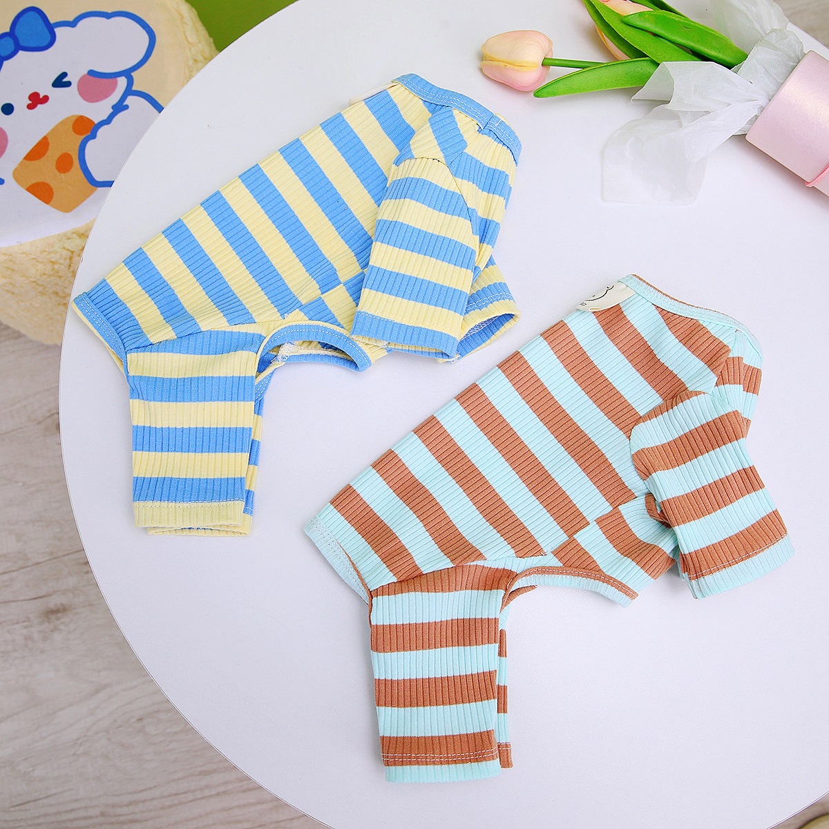 Pakaian hewan peliharaan kaus leher bulat bergaris anjing kaus hewan peliharaan berkaki dua pakaian hewan peliharaan gaya Korea pakaian anjing kecil
