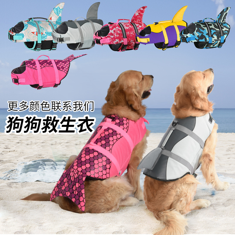 Jaket pelampung hewan peliharaan lintas batas, pakaian berenang anjing putri duyung musim panas anjing kecil ember Prancis jaket pelampung pengambil emas grosir